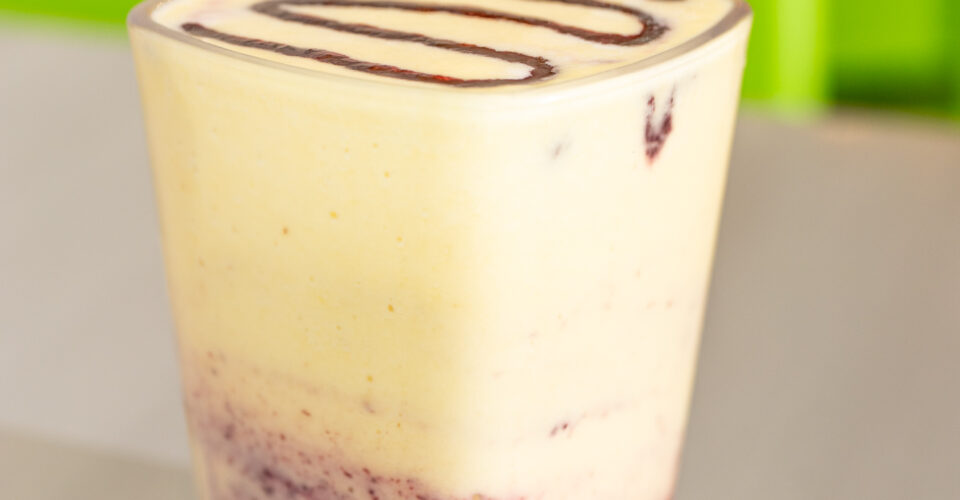 Vanilla whey protein, collagen, mango, pineapple, blueberry glaze.