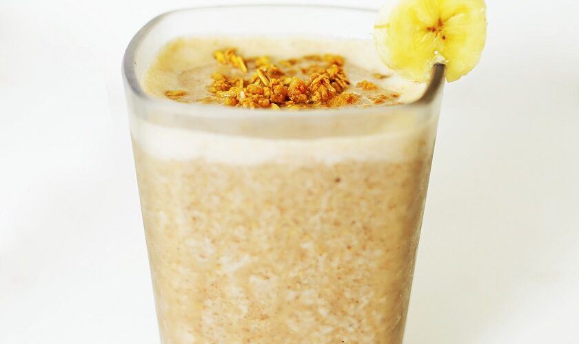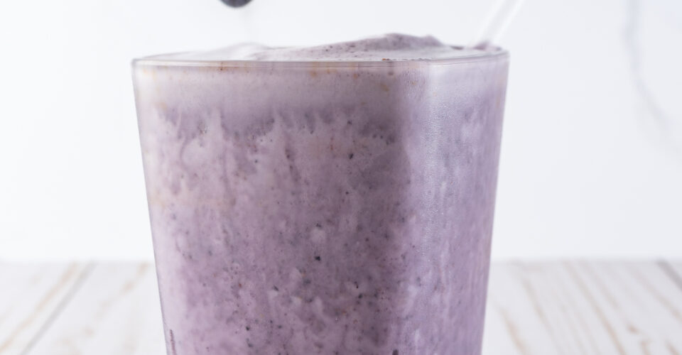 Vanilla whey protein, blueberries, flax, almond butter, lemon.