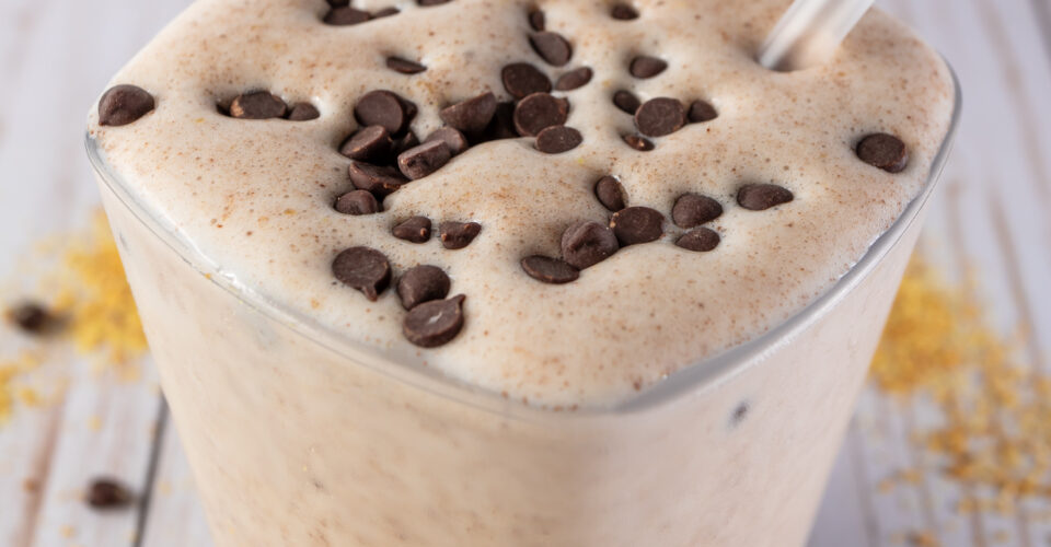 Chocolate & vanilla whey protein, almond butter, chocolate chips, agave nectar.