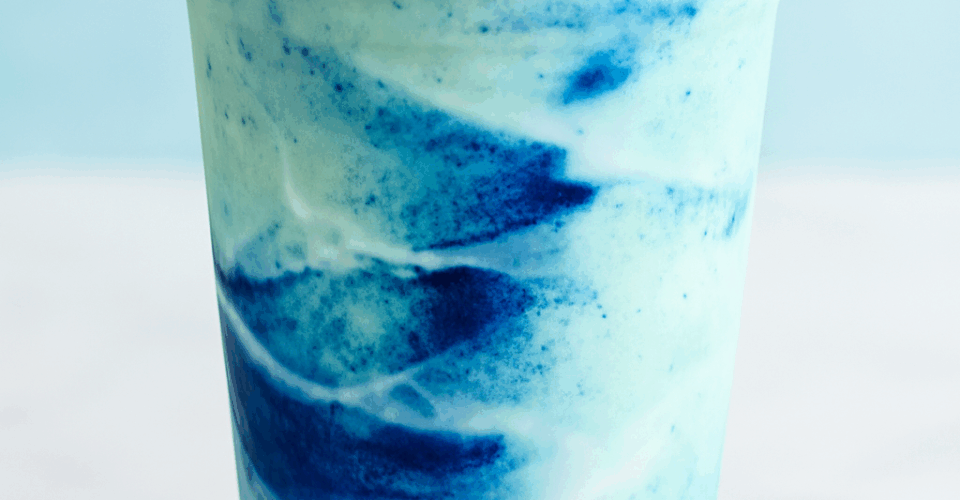 Non-fat yogurt, blue spirulina, mango, avocado, pineapple, vanilla whey protein, collagen.